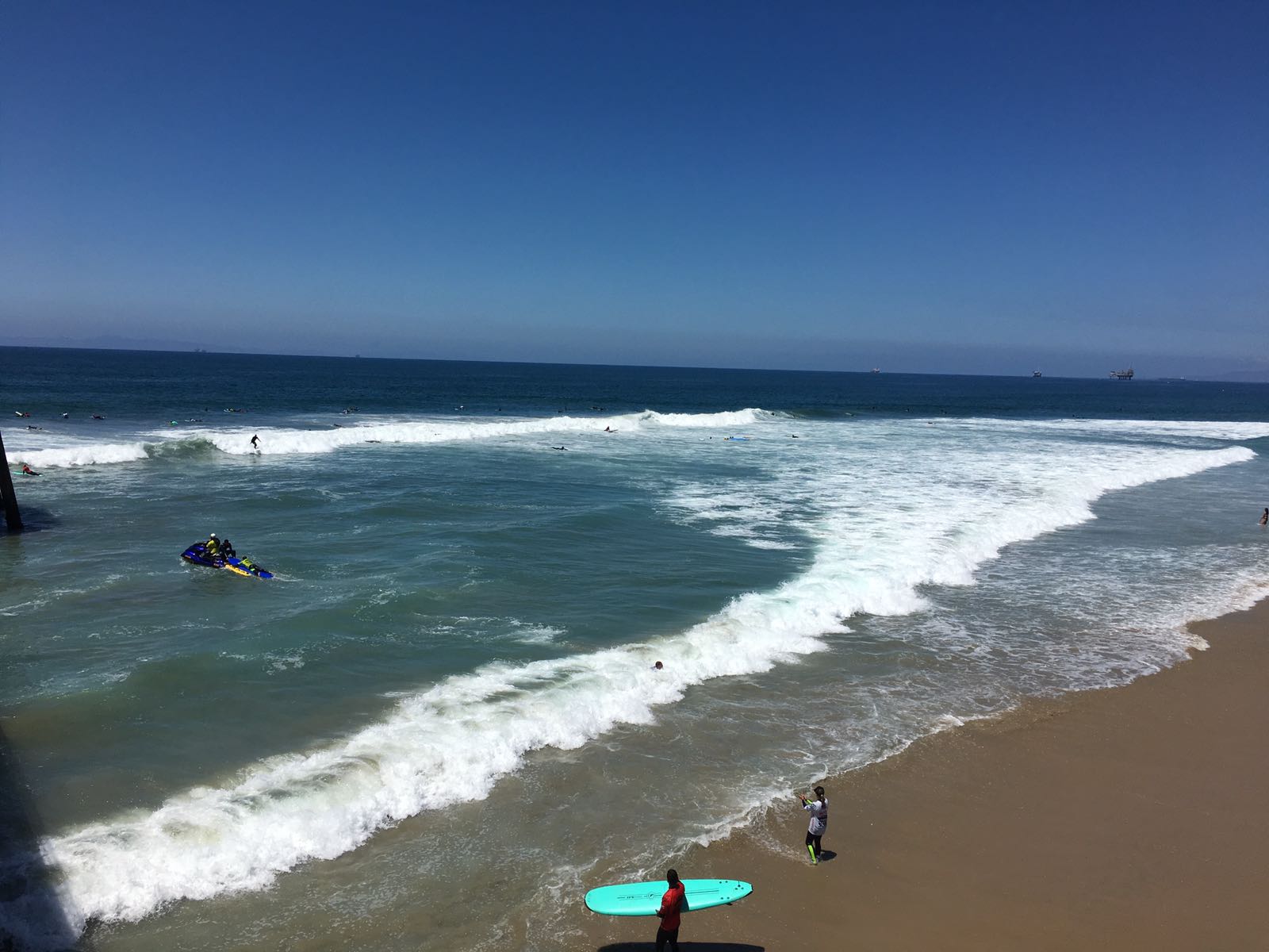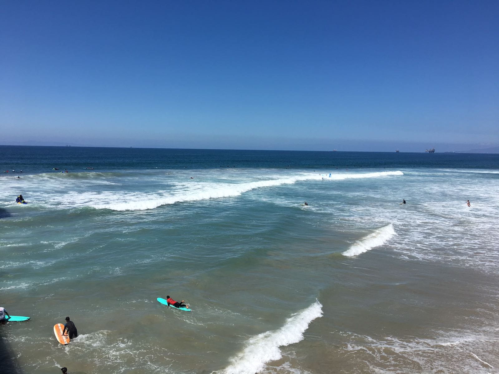 Nachdem wir unsere zwei Koffer gepackt sowie den dritten im Hotel abgegeben haben fuhren wir nochmals auf dem Highway 1 Richtung Los Angeles Airport. Vorher machten wir noch einen Zwischenstop in Huntington Beach wo wir vom Pier aus die Surfer bestaunen konnten. Nach genau 2800 Meilen (rund 4500km) haben wir “unseren” Ford Edge wieder wohlbehütet zurückgegeben.