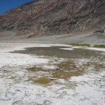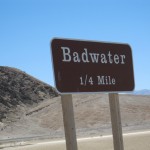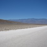 Im Death Valley angekommen besuchten wir zuerst den Zabriskie Point mit den diversen Canyons und fuhren dann weiter zum Visitor Center im Furnance Creek. Dies lag schon rund 30 Meter unter dem Meeresspiegel. Weiter gings dann zum 20 Meilen entfernten Badwater. Dies ist mit 85.5 Meter unter Meer der tiefste Punkt von ganz Nordamerika. Folglich war es dort auch am heissesten. Der Badewater Point liegt am Badewater Basin, einem ausgetrockneten Salzsee, der wenn es mal kräftig regnet, sich auch leicht füllt. Es war beeindruckend wie heiss es dort war und auch die weite ebene Fläche.